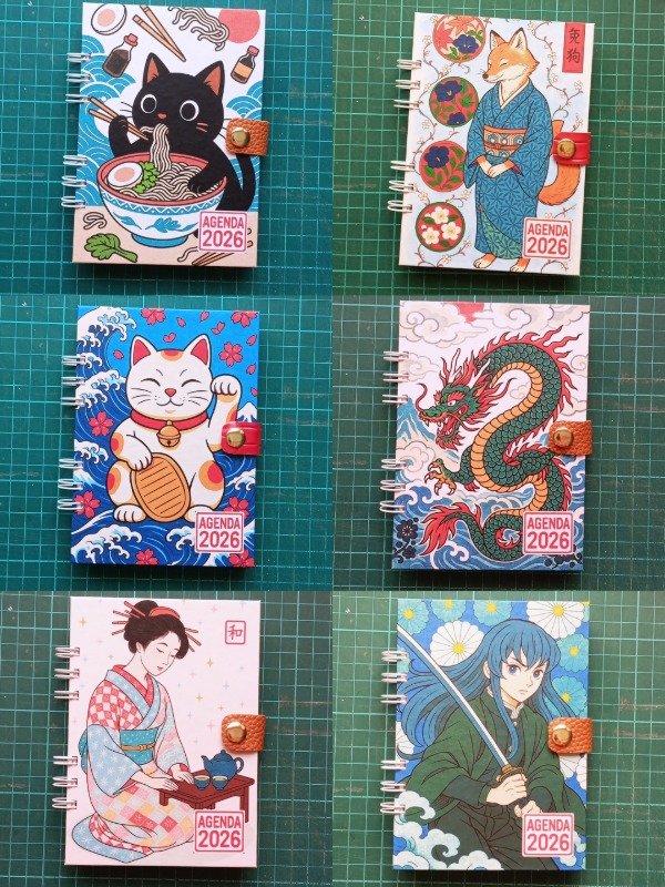 Un pack completísimo para crear tus propias libretas y agendas con 12 personajes distintos inspirados en clásicos del anime y la cultura nipona 🇯🇵