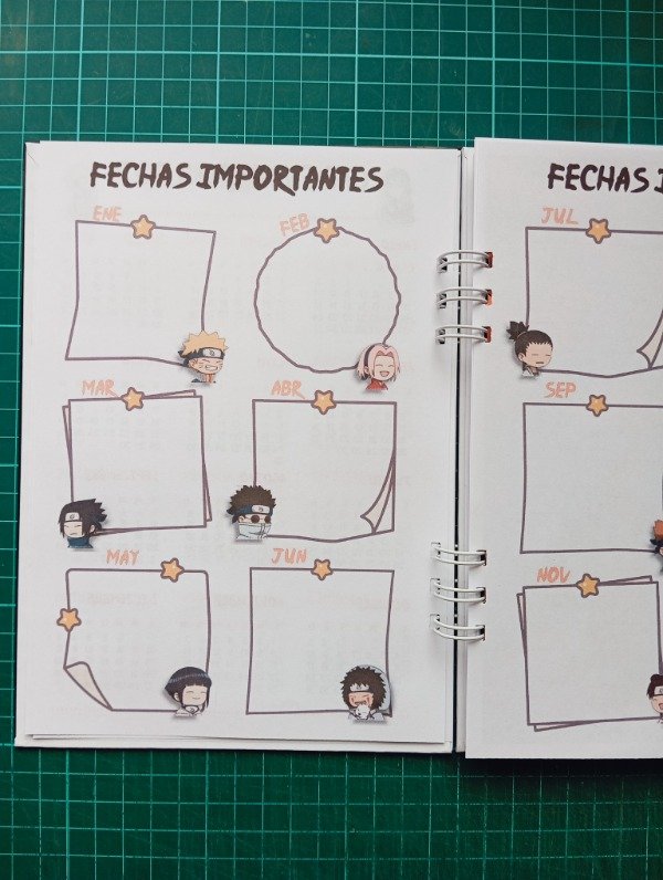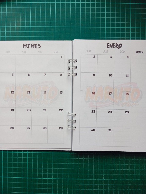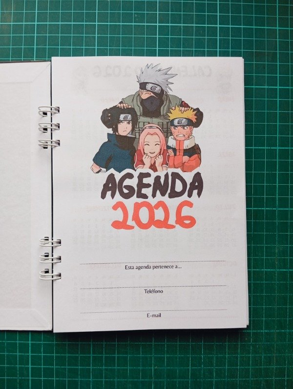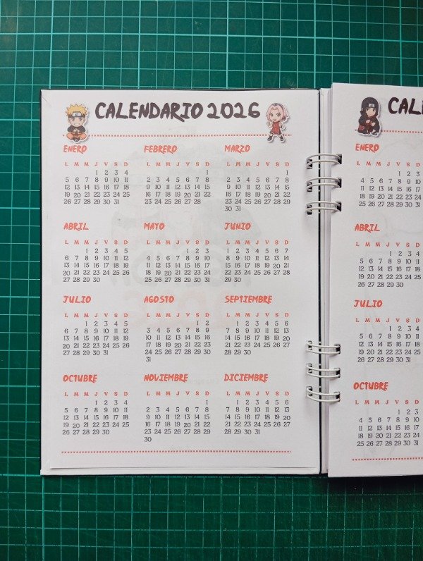 Organizá tu 2026 con esta agenda semanal temática de Naruto, pensada para imprimir con distintas opciones según el tipo de papel y encuadernación que prefieras.